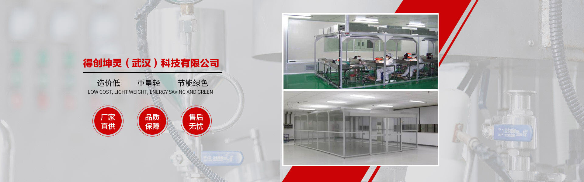 得創(chuàng)坤靈成立于2010年6月,專業(yè)從事食品無菌車間、GMP車間、電子無塵車間、食品醫(yī)藥包裝車間、醫(yī)療器械車間、潔凈棚、土建工程簡易房、無菌實(shí)驗(yàn)室、組合式空調(diào)機(jī)組等項(xiàng)目的設(shè)計(jì)、裝修、施工、調(diào)試、安裝為一體的凈化工程公司,承接十萬級、萬級、千級、到百級的凈化車間、無塵車間、無塵室、潔凈廠房、潔凈室工程的改造與建設(shè)。 作為中國潔凈室系統(tǒng)工程及設(shè)備制造高品質(zhì)、專業(yè)化的代表,得創(chuàng)秉承“追求完美品質(zhì)、超越客戶期望”的理念,通過對客戶生產(chǎn)環(huán)境的深入研究及多年的工程實(shí)踐,積累了豐富的潔凈室空調(diào)凈化系統(tǒng)及節(jié)能優(yōu)化設(shè)計(jì)、項(xiàng)目管理及施工經(jīng)驗(yàn),綜合實(shí)力始終處于業(yè)界領(lǐng)先地位。 公司資質(zhì)齊全,包括裝飾裝修工程二級、機(jī)電安裝二級、電子與智能化二級、消防工程二級、環(huán)保工程二級;擁有多名高級工程師及暖通設(shè)計(jì)工程師,有著醫(yī)藥凈化工程設(shè)計(jì)、食品無菌食設(shè)計(jì)、電子無塵車間設(shè)計(jì)經(jīng)驗(yàn),長年與設(shè)計(jì)院有著良好的合作和溝通關(guān)系。公司多年專業(yè)從事凈化工程安裝業(yè)務(wù),擁有數(shù)次在全國各地有著豐富安裝經(jīng)驗(yàn)的安裝工程隊(duì)伍,在大型管道及彩板安裝方面有著豐富的安裝經(jīng)驗(yàn)和先進(jìn)的現(xiàn)場管理體系。 公司產(chǎn)品廣泛服務(wù)于電子、光電、微電子、光纖光纜、精密機(jī)械、生物制藥、食品飲料、航空航天等眾多領(lǐng)域。我們始終以技術(shù)為中心、以創(chuàng)新為動力、以服務(wù)為己任。以一流的產(chǎn)品質(zhì)量,良好的售后服務(wù),參與到激烈的市場競爭中來,贏得客戶的支持與信賴。 隨著公司的持續(xù)發(fā)展、隊(duì)伍的日益壯大,公司將一如既往地堅(jiān)持"以客戶為中心"的理念,在激烈的市場競爭中迎頭奮進(jìn),以"創(chuàng)一流品牌、建一流企業(yè)"的品牌拓展戰(zhàn)略,面對機(jī)遇與挑戰(zhàn),開創(chuàng)一片嶄新的天地! 品質(zhì)成就夢想、秉承口碑相傳、得創(chuàng)凈化……